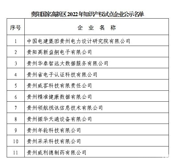 11家企业入选!贵阳国家高新区2022年知识产权试点企业名单公示!