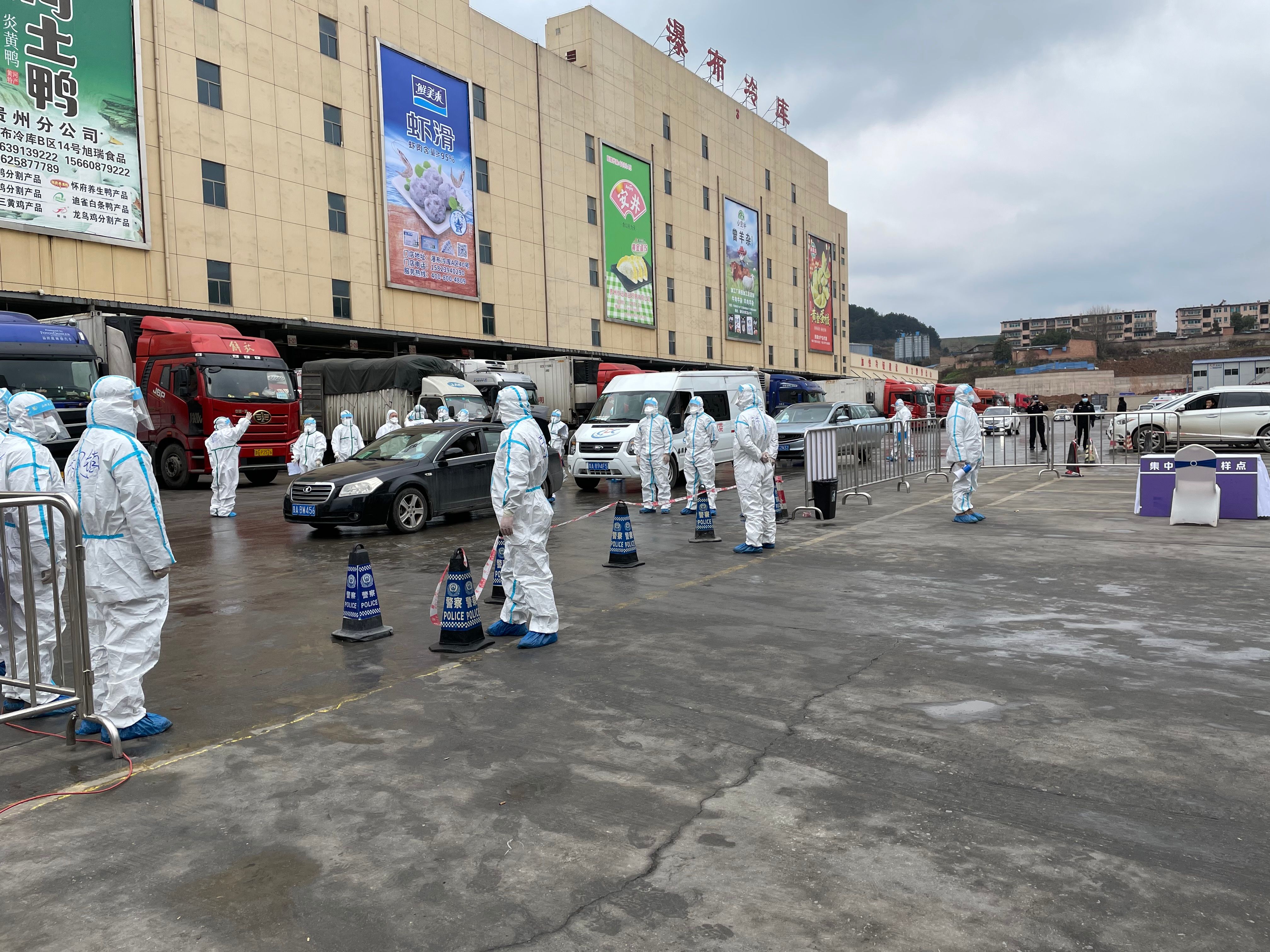 1月17日上午,贵阳市乌当区举行新冠疫情防控进口冷链环节应急演练,在乌当区东风镇瀑布冷链市场举行。