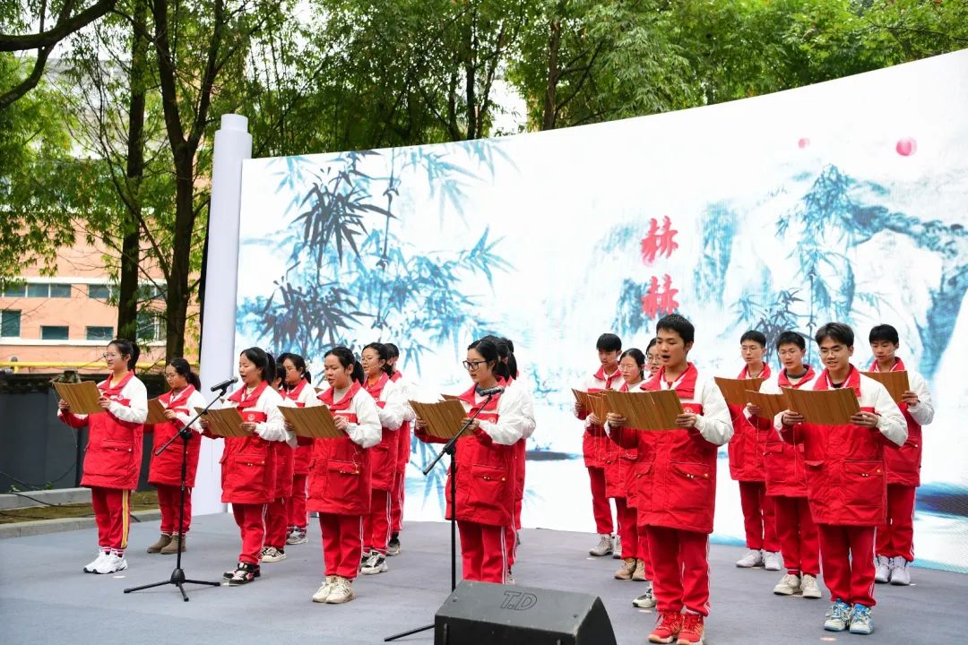 曾强在致辞中说道,杏坛公园以“‘城市绿道’+‘百年名校’”为设计主线围绕贵阳一中沿线而建,将公园景观建设与贵阳一中的百年教育历程深入融合,让市民朋友在漫步街区,感受城市温度的同时能够打卡一中文化,弘扬端棻教育思想,体现了省教育厅、市教育局、区委、区政府对文化教育事业的重视,更是对贵阳一中的厚爱。杏坛公园文化设计理念高雅,紧紧围绕百年一中的教育历史来设计,不仅具有历史文化价值、旅游观光价值、城市绿化价值,还有着更加深刻的教育意义。贵阳一中将不忘初心、牢记使命,砥砺前行,继续为党育人、为国育才,追求高质量发展,办好人民满意的教育,不断为杏坛公园谱写更多教育故事,增添更多光彩成就。