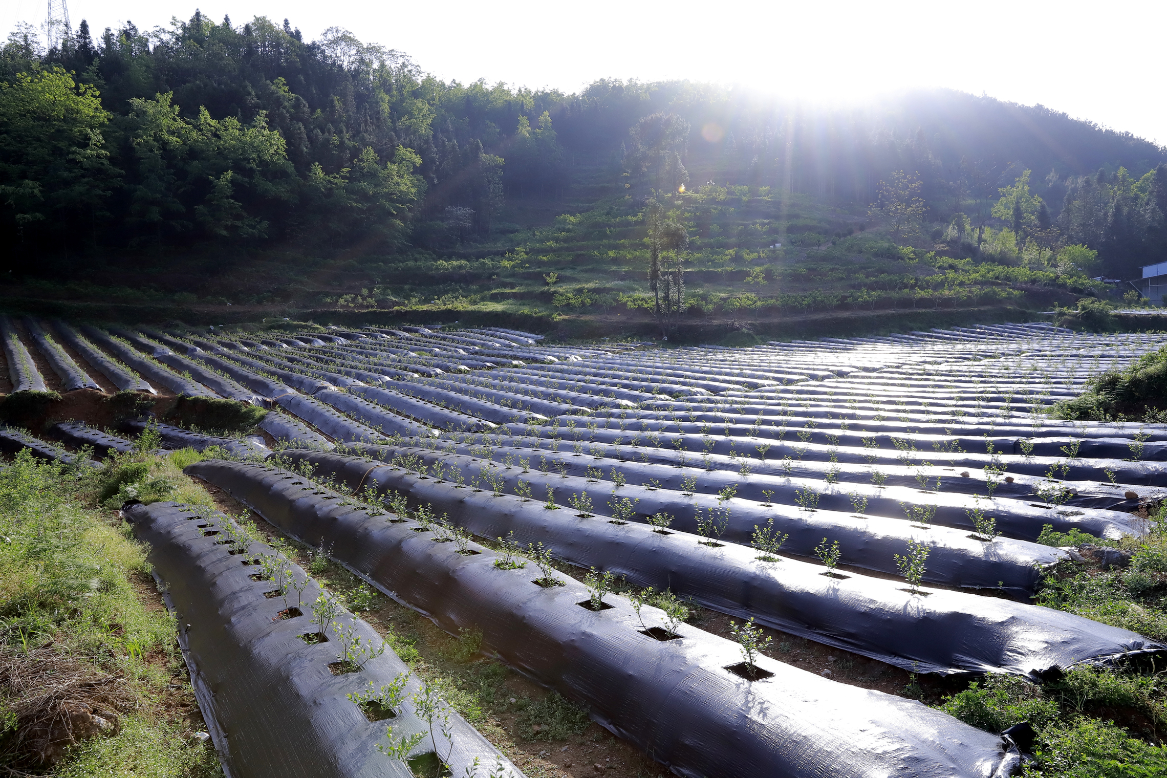 据吴应超介绍,眼前的万亩蓝莓基地在种植蓝莓之前是一片荒山,脱贫攻坚期间,板当镇统筹规划,以荒山变为经济林、经果林为目标,打造万亩蓝莓园建设。于是,昔日沉寂的荒山荒坡变成了绿色蓝莓园,美了环境也富了农民。
