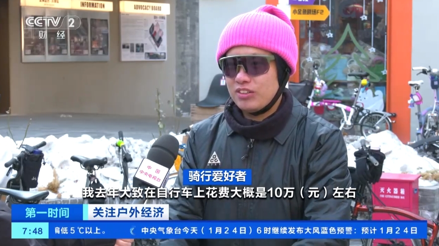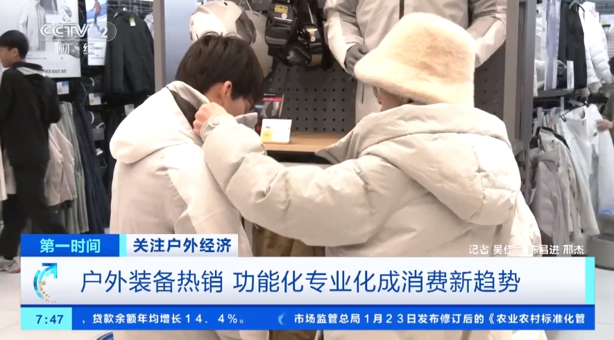 晚上七点,在北京的一家户外用品销售门店,不少消费者正在选购。相关负责人告诉记者,2023年,户外用品的销售呈现爆发式增长,特别是徒步、穿越、滑雪、骑行类相关产品,实现了两位数甚至是三位数的增长。