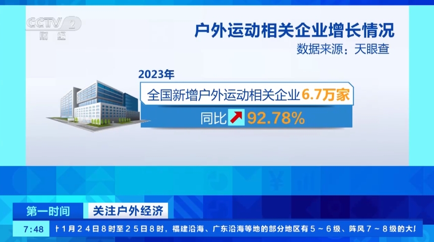 2023年全国新增户外运动相关企业6.7万家,同比增长92.78%。