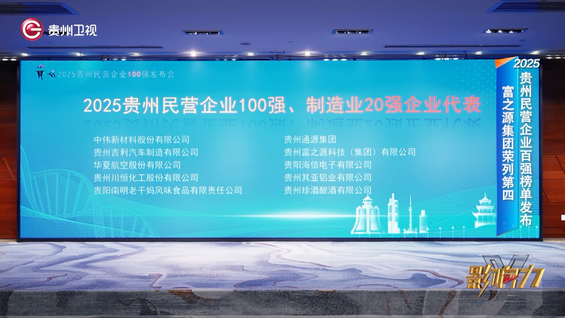 影响力丨2025贵州民营企业百强榜单发布 富之源集团荣列第四