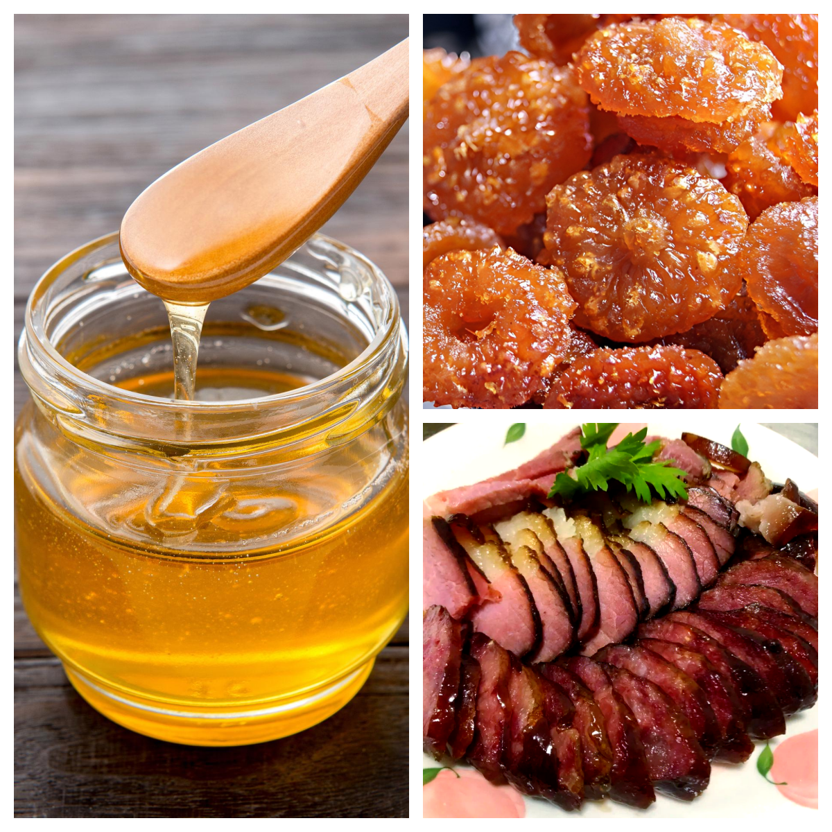 五零吾当品牌的腊肉、香肠、刺梨干、蜂蜜……都是本地农户自己做的,可以试吃再买。