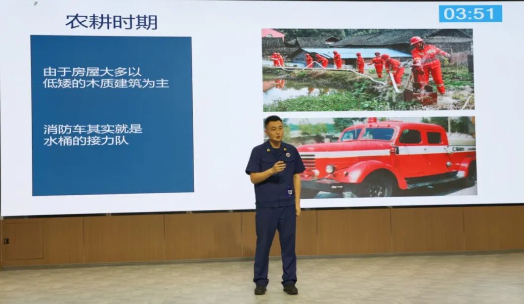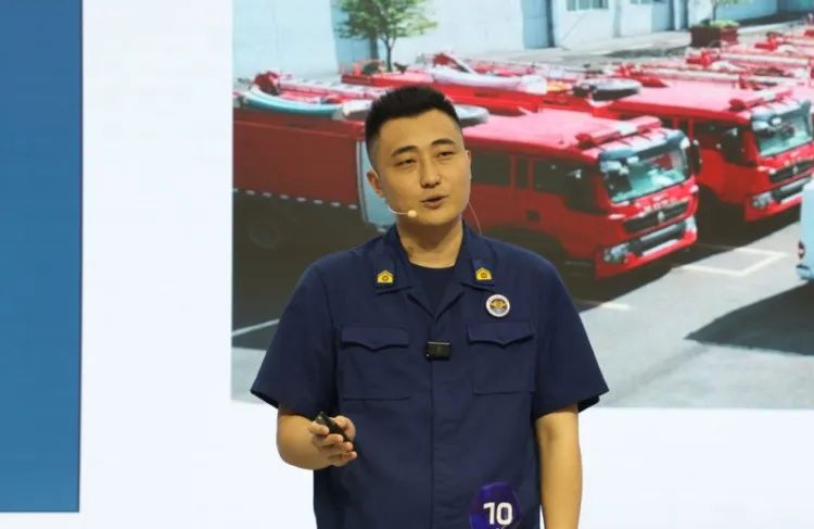张明顺凭借出色的演讲技巧讲解了多折臂举高消防车在火场的应用,介绍了消防装备的强大力量和它在高层筑火灾中的重要作用,配合震撼的火场救援视频,让观众们直观感受到这款消防车在关键时刻的“神兵天降”。