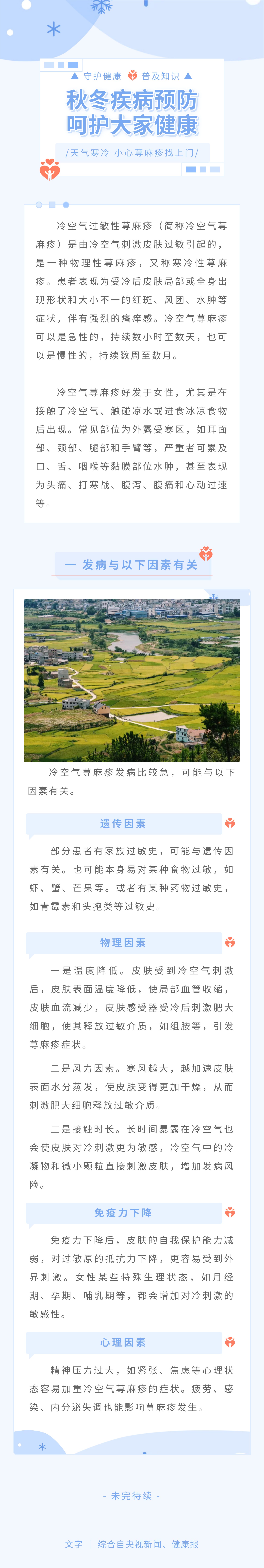 健康日历 | 天气寒冷 小心荨麻疹找上门(上)