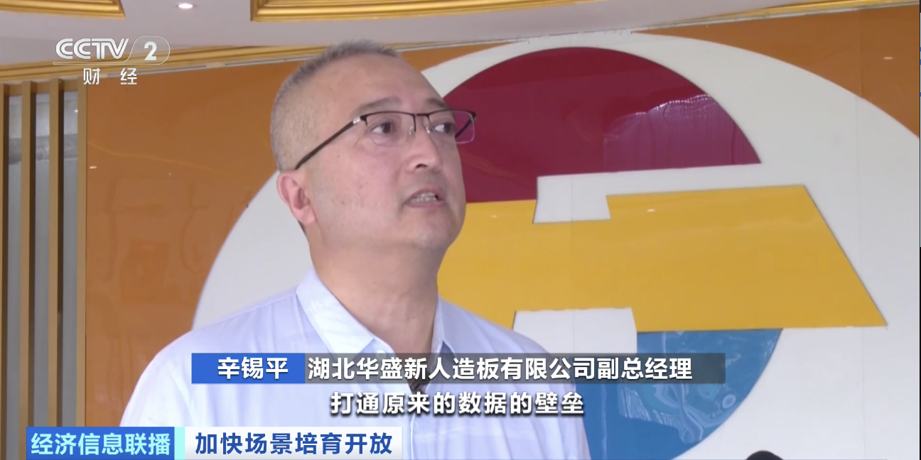 湖北华盛新人造板有限公司副总经理 辛锡平:采用5G来赋能,推进(整体)各部门之间的信息共享,打通原来的数据壁垒。