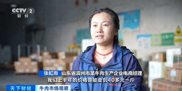 山东省滨州市某牛肉生产企业电商经理 张虹雨:以线上的牛腿肉产品为例,上半年的价格能卖到每斤40多元,下半年每斤不到30元。近期线上产品每天销量在1000单以上,牛肉有2吨到3吨的出货量,较去年有大幅提升。