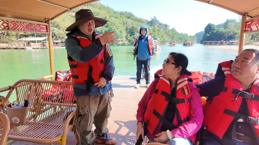 在我国首个跨境旅游合作区——中越德天(板约)瀑布跨境旅游合作区,“预约组团、固定线路、限时跨境、团进团出”的创新模式让来自中越两国的游客可以跨越国境,一日之内体验两国风情。与之同步,德天村的旅游产品也迎来了硬核升级。村里决定投入上百万元淘汰旧竹筏,升级成统一正规的观光竹筏。