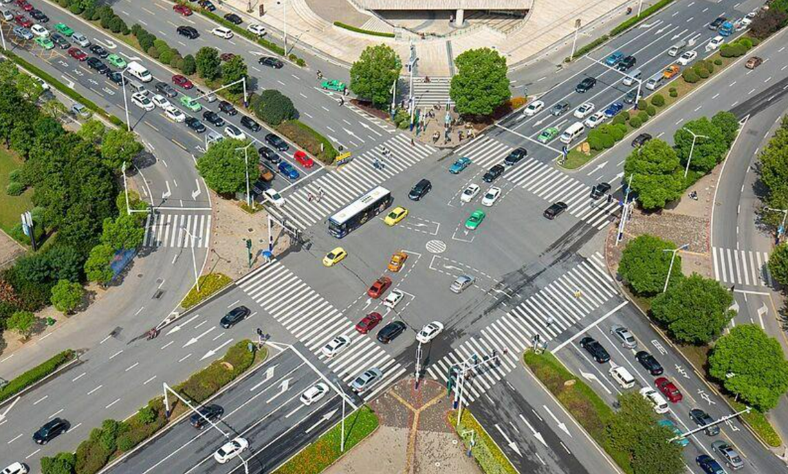 十字路口车流、人流量较大,应保持低速行驶,及时停车避让行人。