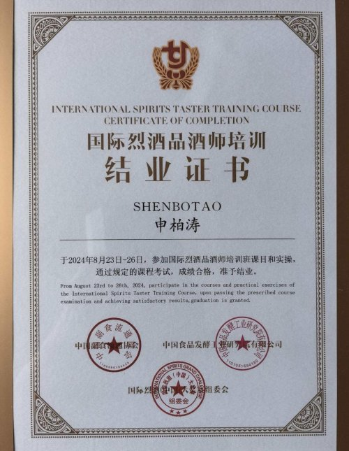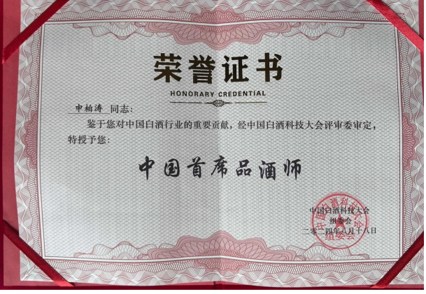 如今,申柏涛已收获了行业内的诸多崇高荣誉:2024年荣获“中国首席品酒师”称号,2025年被评为“中国工匠大师”。他同时拥有国家一级酿酒师、一级品酒师、国家首批老酒高级鉴定师等专业资格,并担任仁怀市酱香酒产业协会专家组组长及多家酒厂的首席调酒师与品控师。他亲手勾调的恒成永老酱酒、咏和烧坊一号酱香铂金等五款产品,曾在2022年国际烈酒大奖赛中勇夺金奖,他本人更被盛赞为“金奖冠军调酒师”。2025年,由他倾心打造的“53°茅月奔月”酒,再次在IGC国际烈酒(香港)大赛中折桂,向世界展示了中国酱香酒的非凡品质。这些沉甸甸的荣誉,既是对他近三十年如一日坚守的最好褒奖,更是他用一颗炽热的匠心精心培育出的硕果。