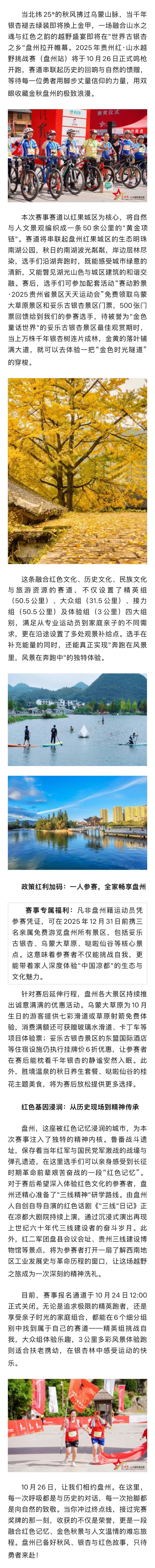 2025贵州红·山水越野挑战赛(盘州站)10月26日鸣枪!在金秋秘境中传承红色信仰