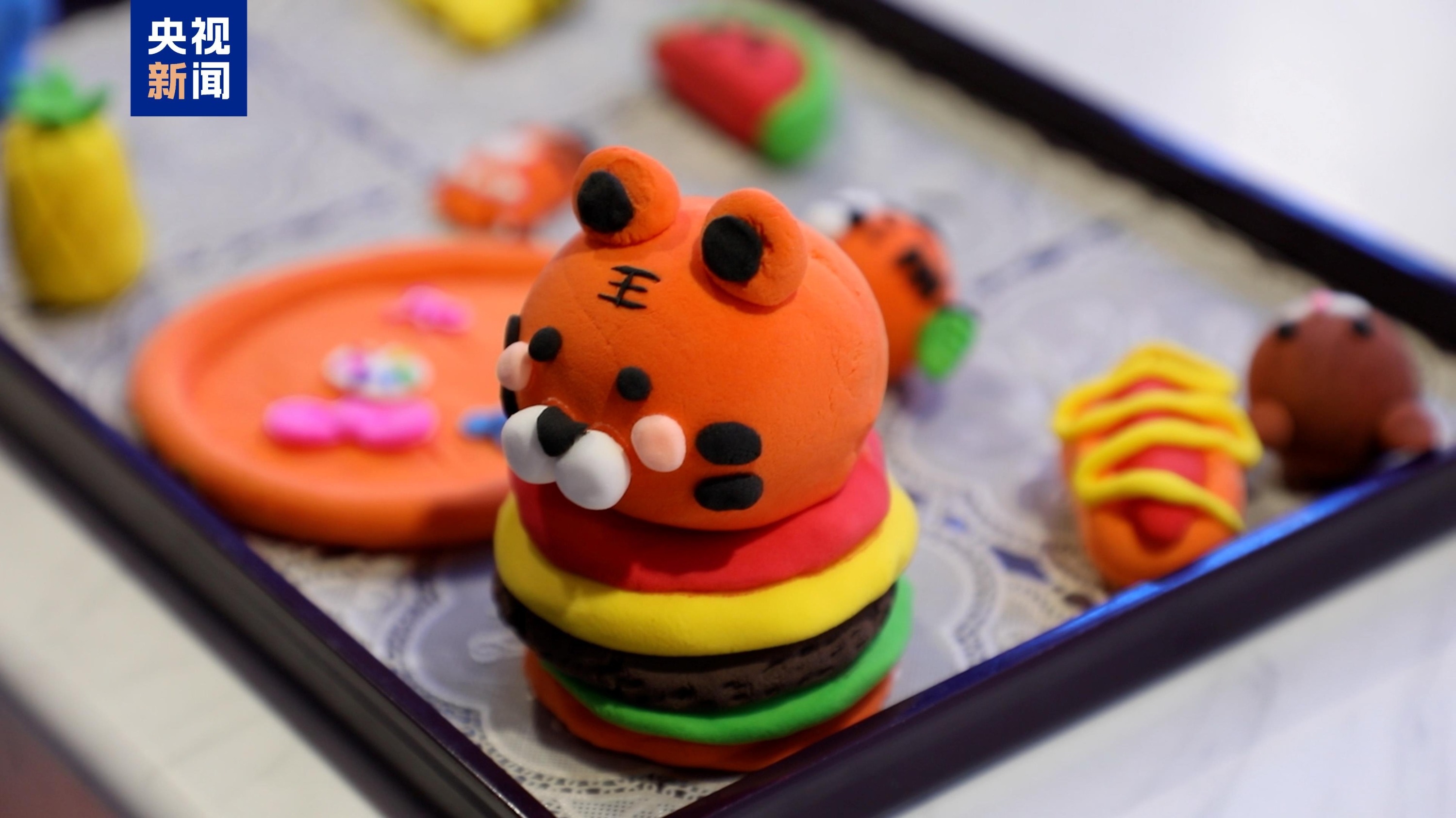 在车厢内,工作人员还打造了“东北虎非遗馆”,邀请剪纸艺人现场教学,旅客可亲手制作虎形窗花。造型可爱的虎形手办、虎纹饼等泥塑也备受青睐。乘务人员随车讲解东北虎科普知识,旅途氛围温馨愉悦。
