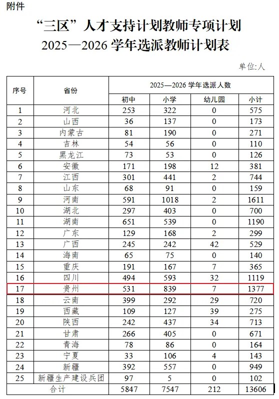 贵州1377名!2025年“三区”人才支持计划教师专项计划发布