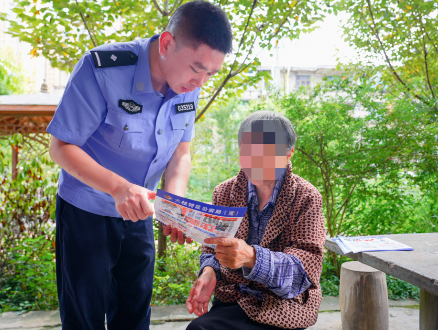 六盘水市六枝特区公安局的反诈小分队开展“靶向式”宣传,不仅围坐“拉家常”,还联合网格员进行“敲门行动”,为独居老人送上印有民警电话的“反诈联系卡”。