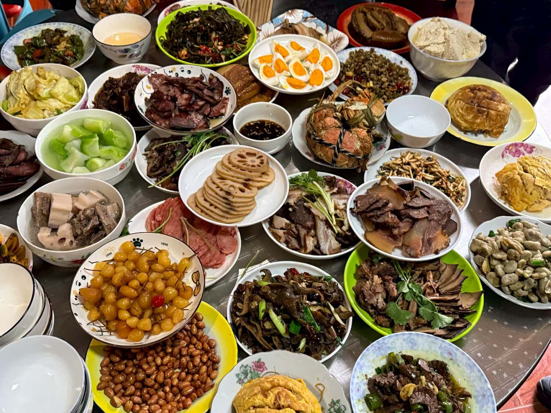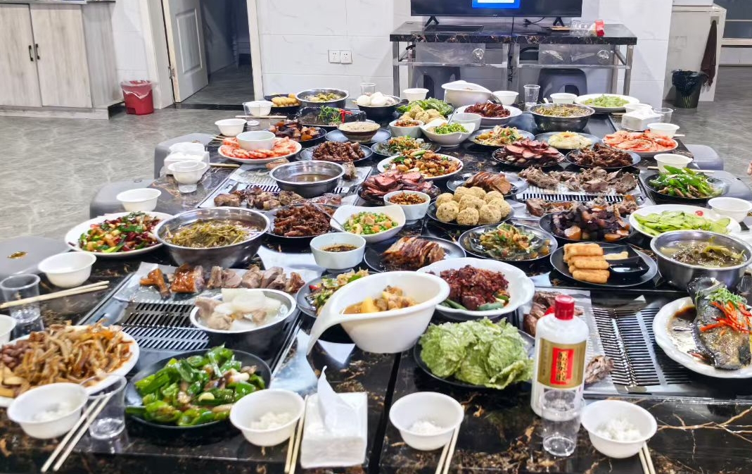 “荤素搭配、咸甜兼具” 的丰富格局,融合了家常卤味、河鲜海鲜与特色小菜,处处透着老味道的醇厚与团圆的诚意。