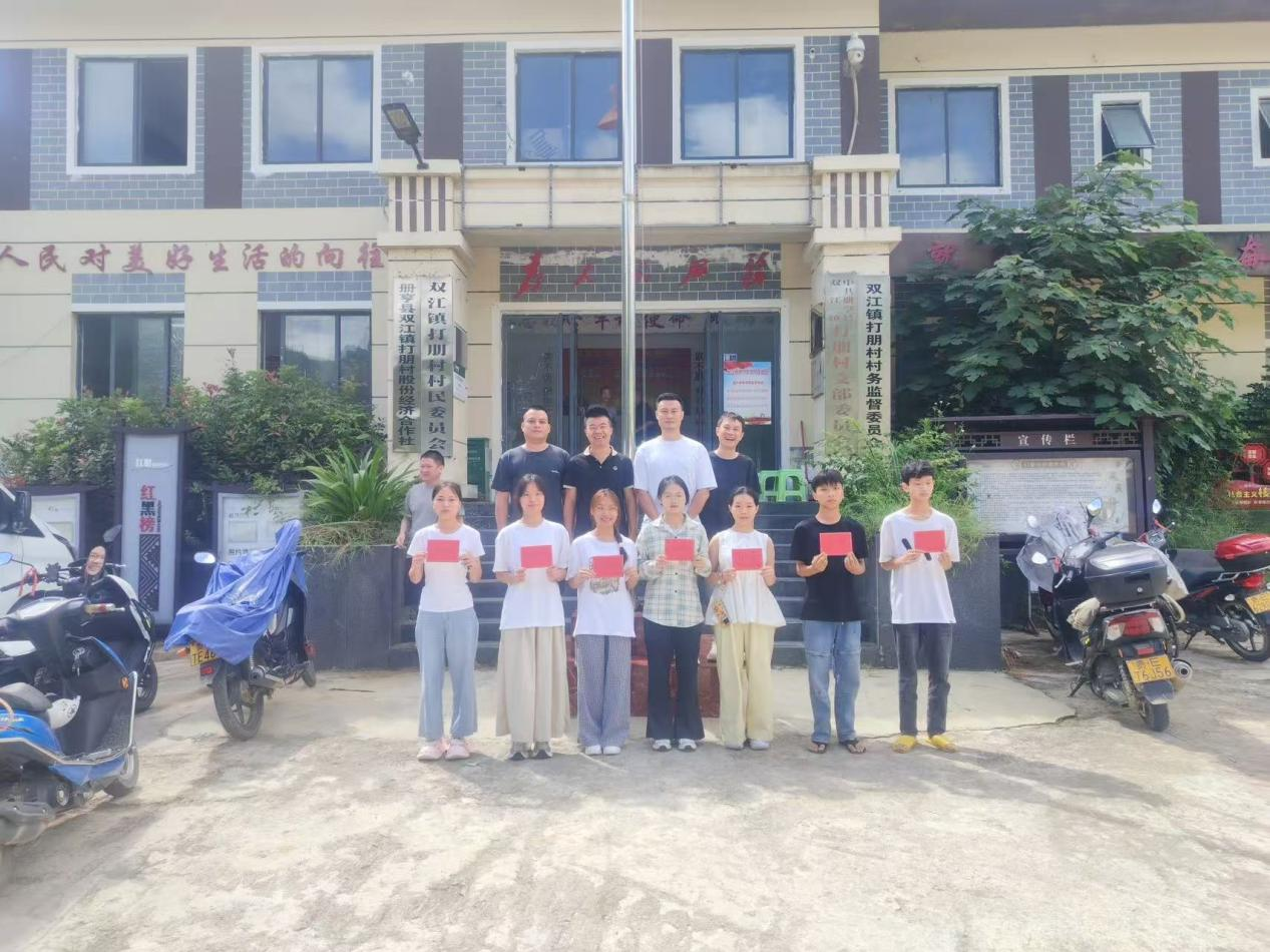 温情汇聚力量,爱心点亮梦想。助学活动在各村分别举行,由驻村第一书记、驻村干部、村支两委成员共同为学子们发放助学金并激励学子们要勇担新时代青年的使命,持续学习,在大学校园里续写奋斗青春,学业有成后积极回报家乡,共同助力双江的建设与发展。在助学金发放现场,各位受助学生纷纷发言,表达对党委政府、帮扶单位、村两委的诚挚感谢,畅谈对大学生活的憧憬与期盼。一名学生代表感言:“这份来自家乡的奖励是我们前行路上最温暖的动力,我们定将努力拼搏,为家乡争光。”