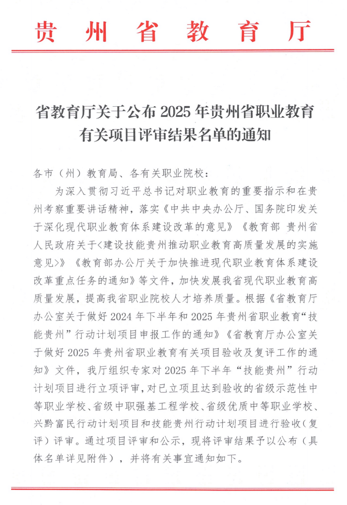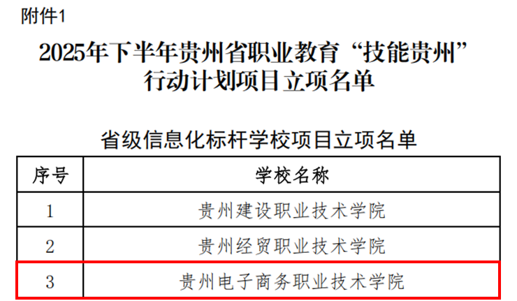 喜报丨贵州电子商务职业技术学院6个项目获得2025年下半年贵州省职业教育“技能贵州”行动计划项目立项!