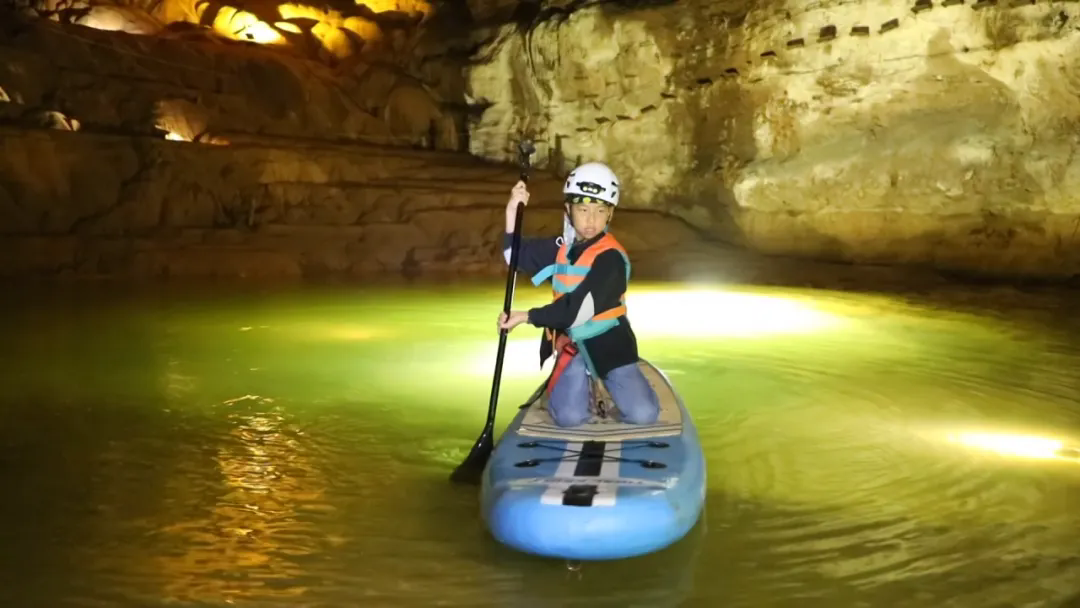 “这个洞比较新,不像外边那种商业化很厉害,里面的项目也比较有意思,有攀岩,还有洞里的桨板,我觉得还是蛮好的,以前在外面都没有体验过。”上海游客浦弘斌说。