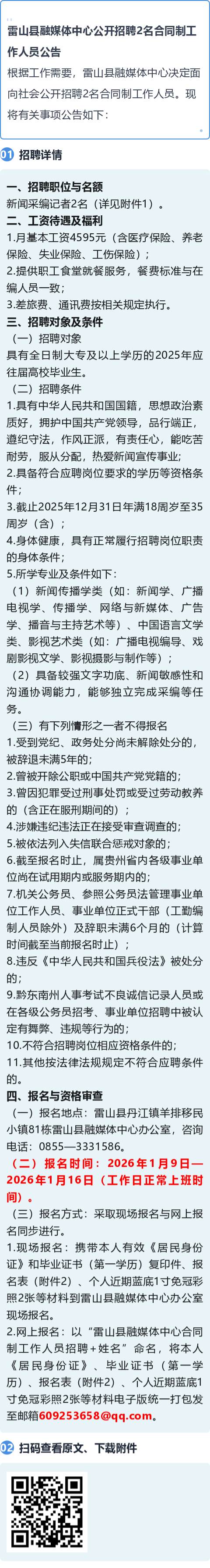 【事业单位】融媒体中心招聘新闻采编记者2名!报名截止时间:2026年1月16日!