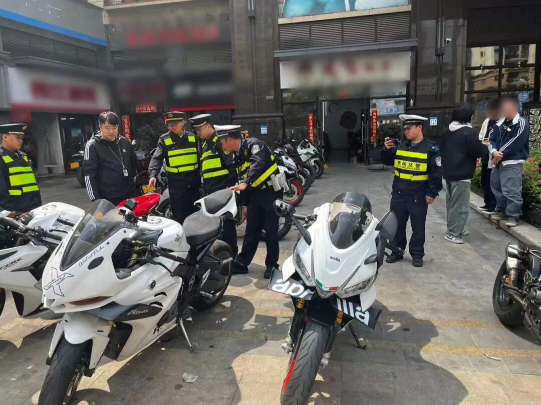 此次行动依托前期工作询问、大数据摸排、群众投诉精准开展。执法人员来到改茶大道某机车经营店检查,现场发现贵ATN**0、贵ASK**2、贵AV**1三辆二轮摩托车均存在擅自改装排气管的违法行为,改变了机动车已登记的结构、特征。