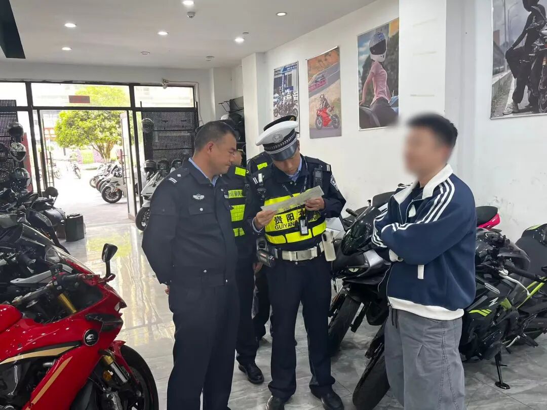 为进一步加强“飙车炸街”专项整治工作,规范和巩固辖区机动车经营及行车秩序,遏制非法改装衍生“飙车炸街”的不良趋势,从源头消除道路安全风险隐患,近日,贵阳交警云岩区大队、案件侦查大队与贵阳市交通运输执法支队云岩大队、云岩区市场监督管理局组成联合执法专班,对辖区改茶大道沿线机车经营店开展排查、走访、普法工作。