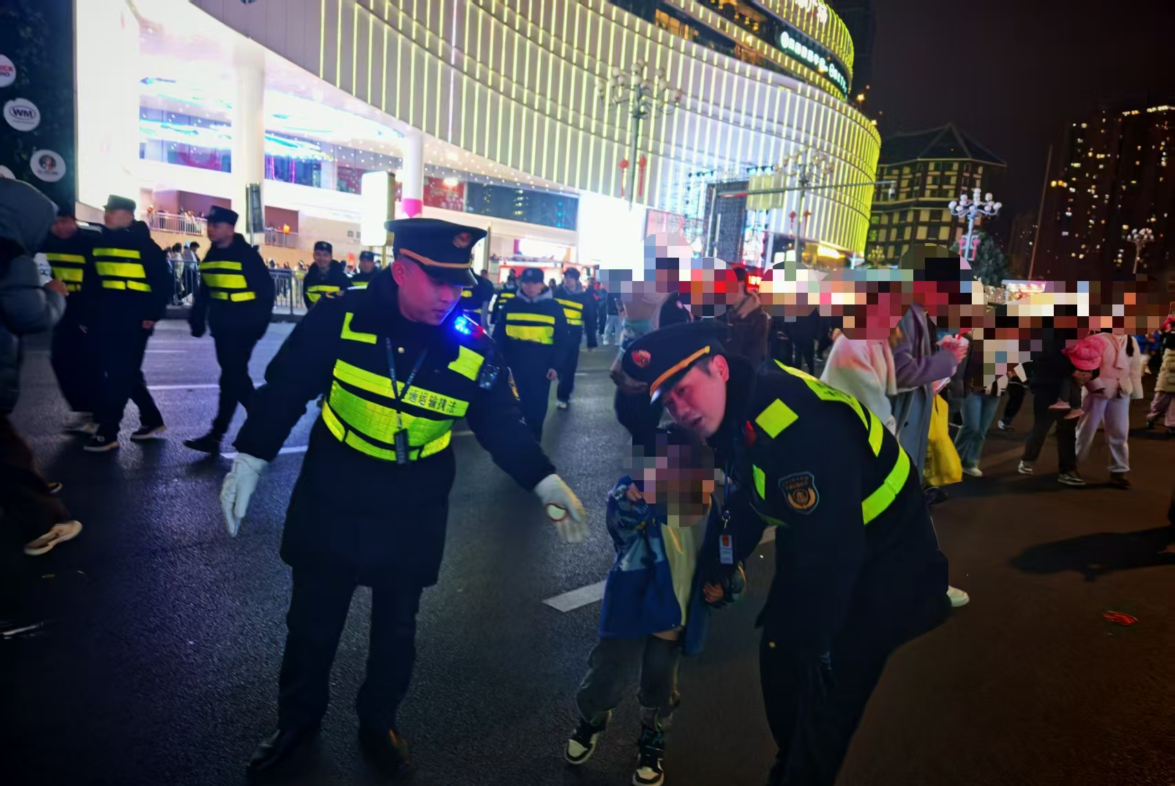 当晚23时许,执法人员在花果园海豚广场周边执勤时,接到市民紧急求助,称发现一名约4岁的小男孩独自在人群中徘徊哭泣,疑似与家人走失。接到求助后,执法人员立即赶至现场,一边将孩子耐心安抚带至安全区域,一边仔细询问家庭信息同时将小孩。由于孩子年龄尚小、情绪紧张,仅能模糊说出父母姓名,无法提供有效联系方式或住址 。考虑到跨年夜现场人员高度密集,为尽快帮孩子找到家人,执法人员迅速联系现场值守特警。在确认孩子身体状况良好、情绪逐渐平稳后,执法人员详细交接了发现地点将其安全移交至特警手中,由特警依托警务平台进一步开展身份核实与家属寻找工作 。