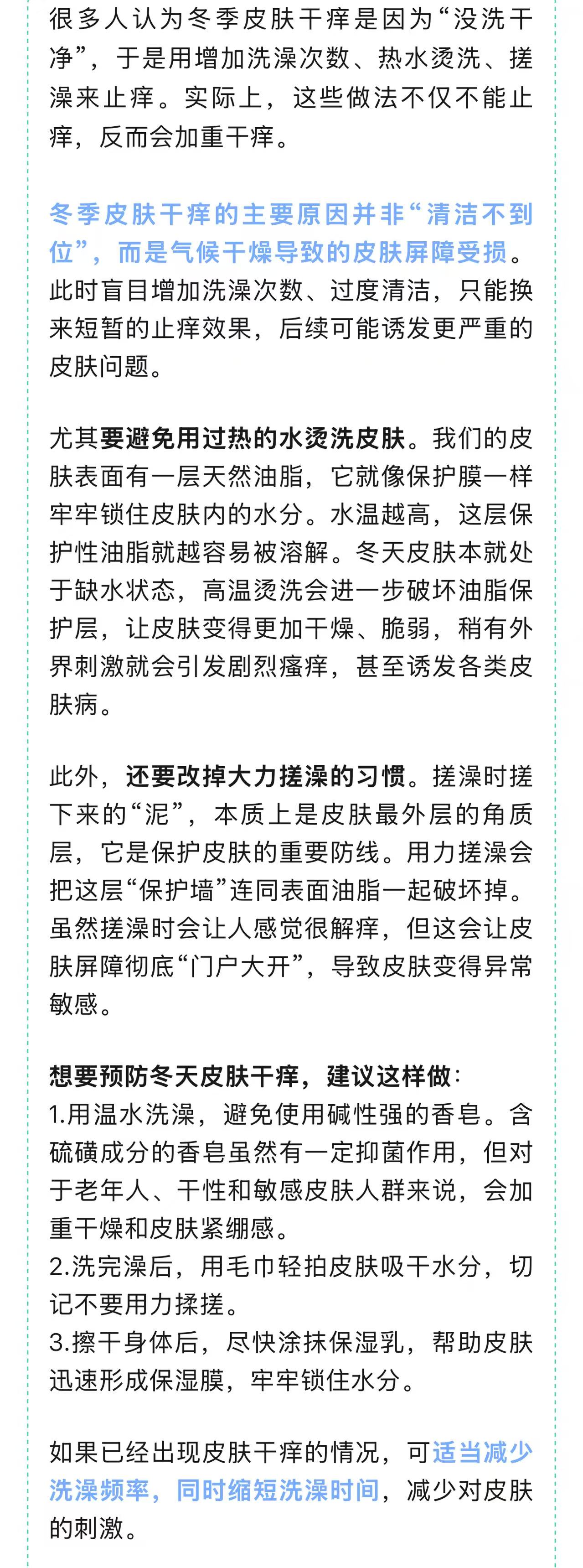冬季皮肤干痒是因为“没洗干净”……是真是假?
