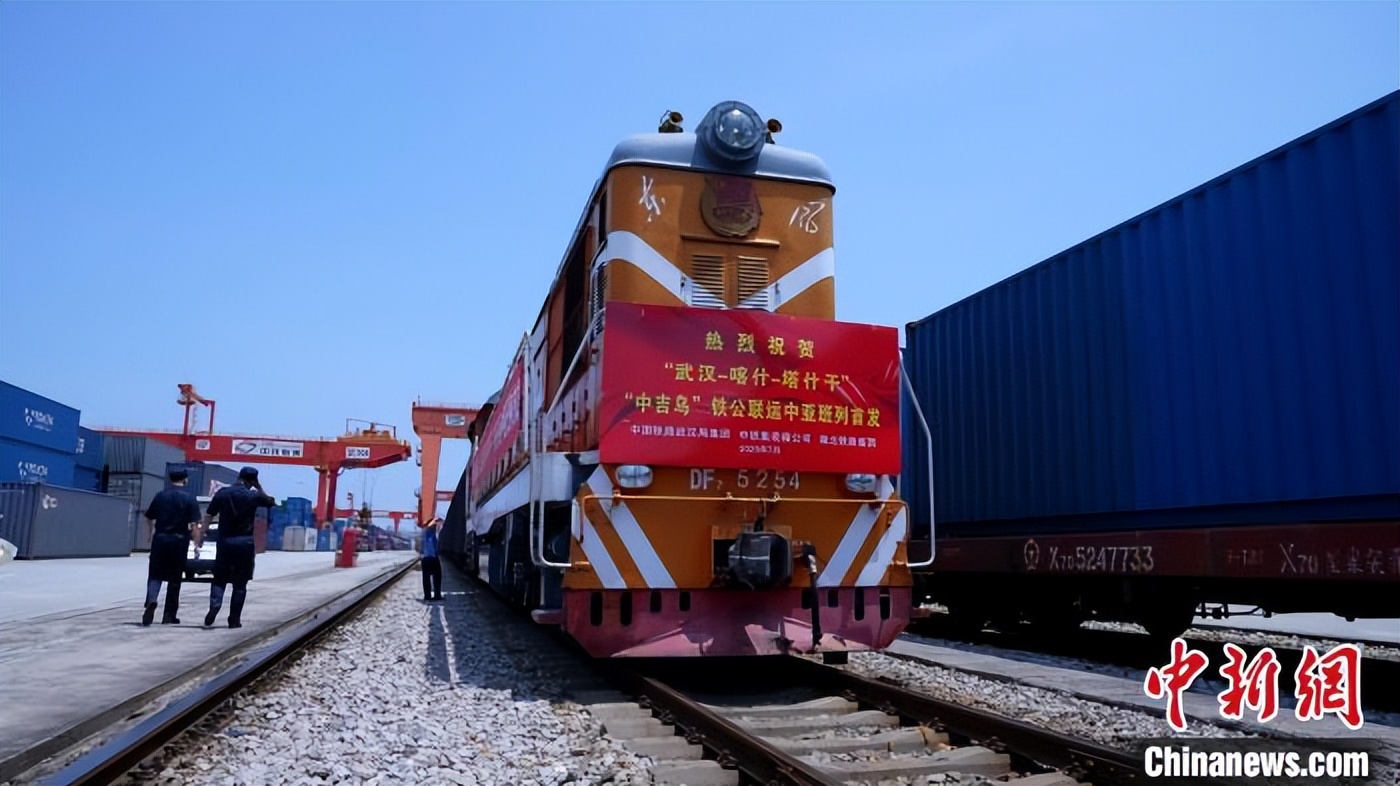 湖北首趟“中吉乌”铁公多式联运国际班列开行