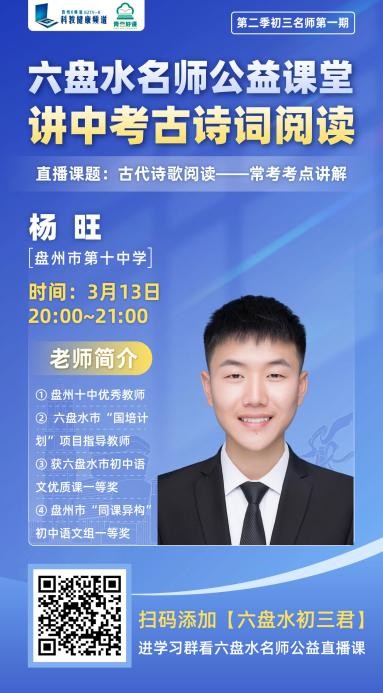 本周邀请盘州市第十中学杨旺老师和盘州市盘关镇盘江中学封顺喜老师给大家带来中考语数一轮备战复习课!