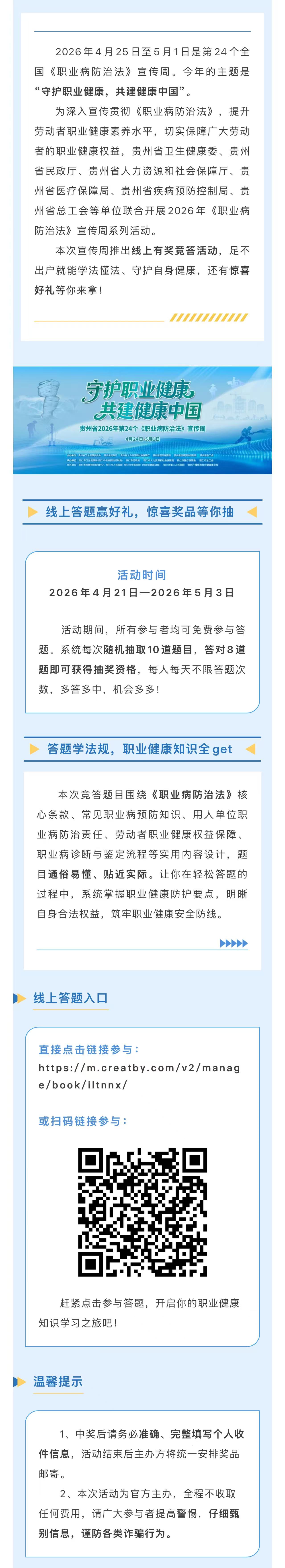 答题赢好礼!2026年贵州省《职业病防治法》宣传周有奖竞答活动开始啦!