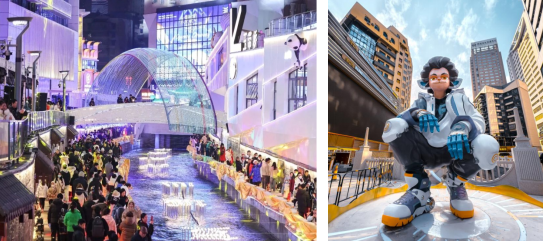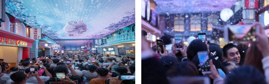 所谓“城轨交通商业特色街”,天幕街区让你感受春夏秋冬的变化,正点定时下“雪”下“泡泡”。让我们这些地地道道的南方“折耳根”,也能感受来自“尔滨”的浪漫。内设有中国江南风、唐人街,日式、土耳其、欧洲风情5个风格区域