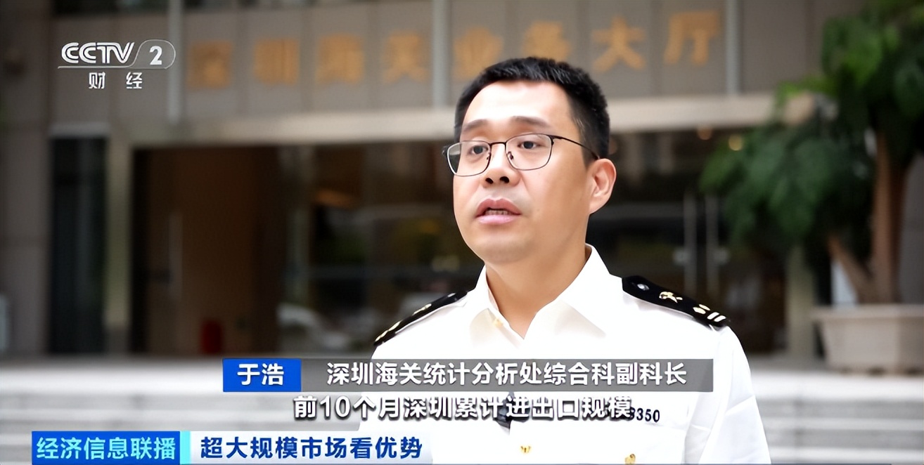 深圳海关统计分析处综合科副科长 于浩:前10个月,深圳累计进出口规模保持内地城市首位。得益于人工智能技术加快应用,相关电子零部件进口快速增长。前10个月,深圳进口机电产品1.2万亿元,增长8.5%。进口农产品822.6亿元,增长10%。