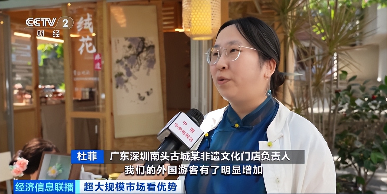 广东深圳南头古城某非遗文化门店负责人 杜菲:进入11月以来,外国游客有了明显增加,现在外国游客购买占比达到了40%以上。