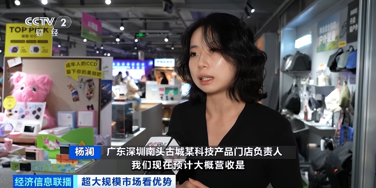 广东深圳南头古城某科技产品门店负责人 杨澜:预计大概营收相比去年增长30%,外国人占30%以上,无弦吉他、耳机、眼镜都有非常好的销量。