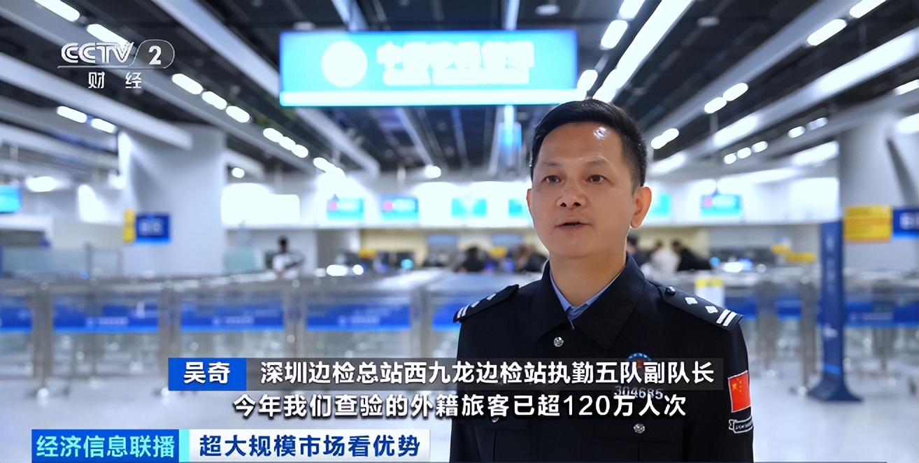 深圳边检总站西九龙边检站执勤五队副队长 吴奇:今年我们查验的外籍旅客已超120万人次,居全国陆路口岸首位,其中享受免签政策入境的旅客超26万人次,同比增幅达100%。