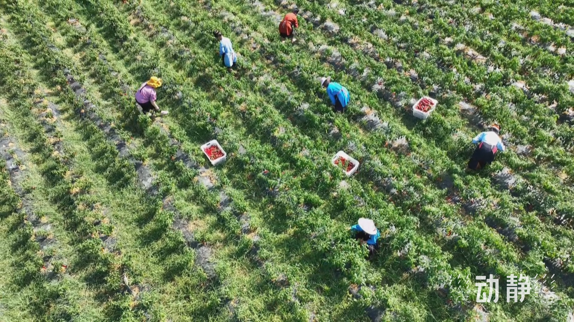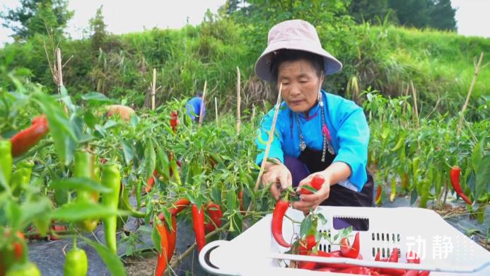 黔东南州丹寨县扬武镇羊浪村辣椒种植基地也迎来了丰收,村民们穿梭其中,忙着采摘装筐。