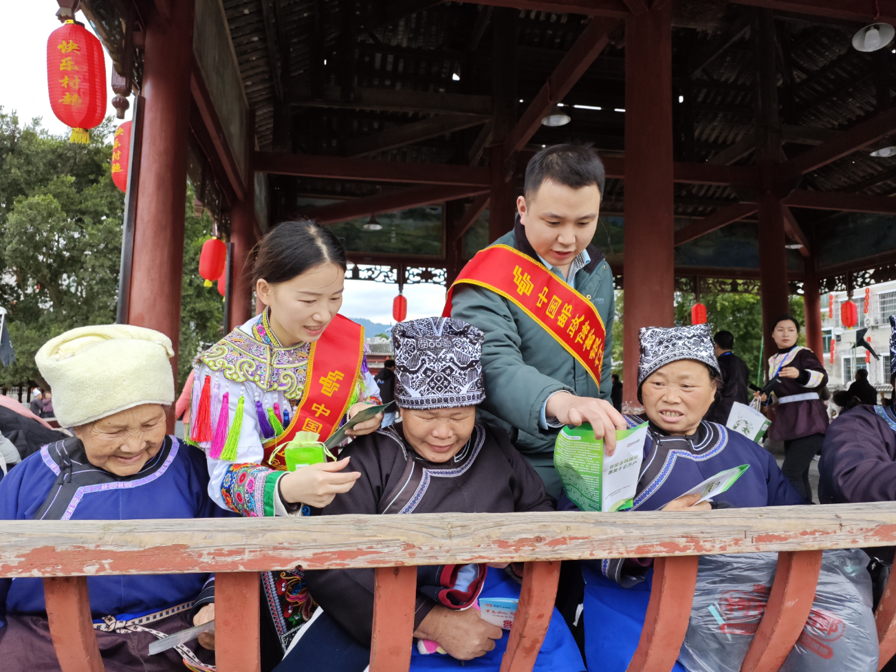 施秉县舞水云台公司是当地的一家集刺绣生产销售、非物质文化遗产传承等为一体的民族品牌文化企业,该公司的绣娘多为当地的大龄苗族女性,整体文化程度不高,对新型网络诈骗知识掌握较少。对此,贵州银行施秉支行组建宣传小队走进苗绣非遗工坊,利用苗汉双语向绣娘们普及防诈反诈知识,通过讲解演绎电信诈骗案例、设置“反诈知识闯关”互动问答小游戏,生动揭示犯罪分子常见作案手法。此外,邮储银行榕江县支行、榕江县农村信用合作联社还利用当地“萨玛节”之际,身着民族服饰深入活动现场开展侗汉双语宣讲;农行凯里城区支行更是将反诈宣传课堂搬到“贵州村T”,上演了一场别开生面的“金融知识T台秀”……