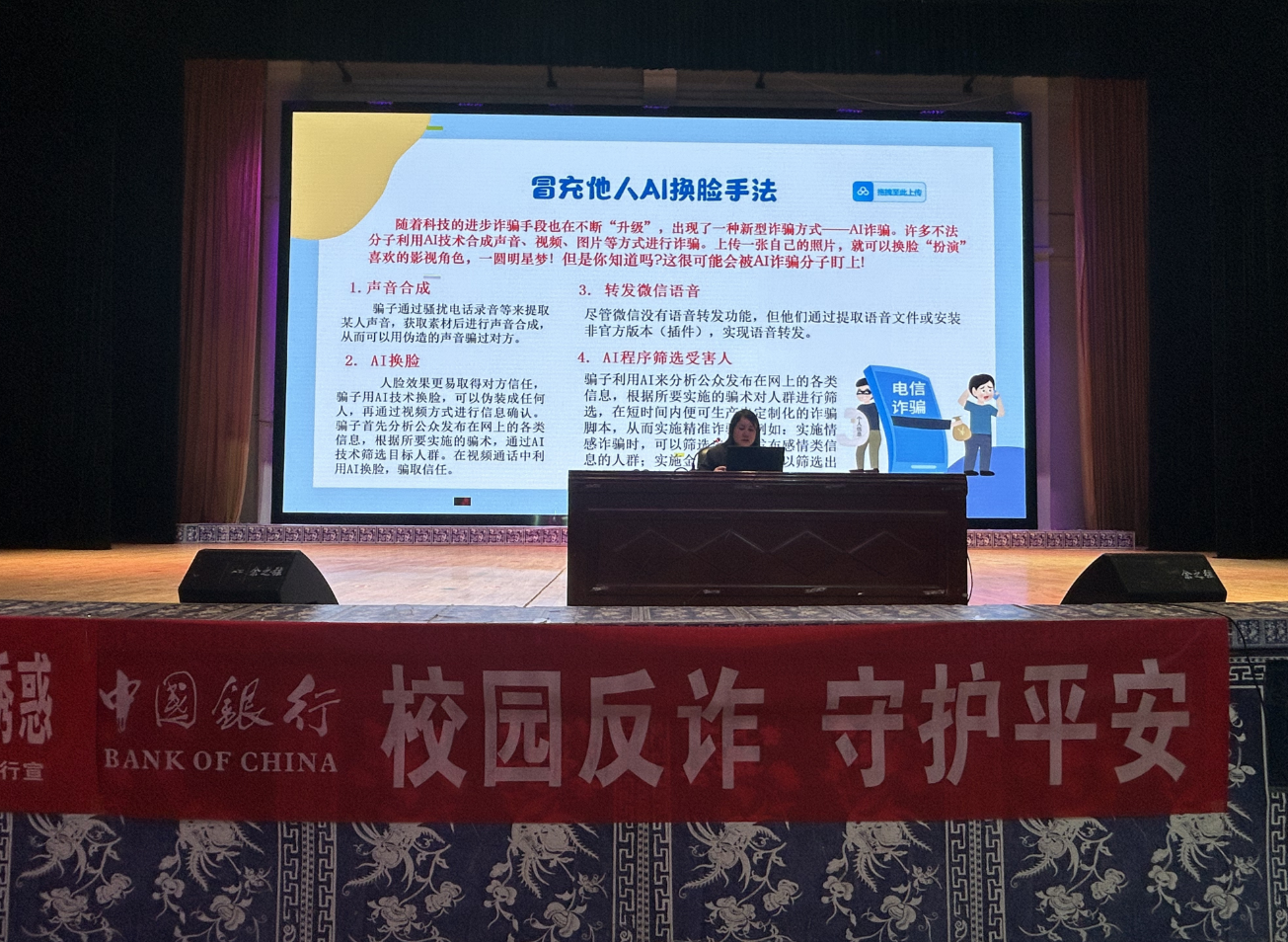 针对高校学生群体金融知识薄弱、易受诈骗侵害的特点,指导金融机构开展开学季反诈宣传进校园活动。其中,中国银行凯里分行组织辖内8家网点走进黔东南职业技术学院,以“全民反诈 与您同行”为主题,通过“观影+案例”双线模式开展沉浸式反诈宣传。一方面,重点讲解个人信息保护、规范用卡等技能,通过“AI换脸诈骗”“助学贷款陷阱”等真实案例解析,揭露新兴诈骗手法;另一方面,组织观看反诈电影《孤注一掷》,结合扫码答题竞赛增强互动体验,强化反诈知识吸收,切实增强校园群体的风险防范意识。