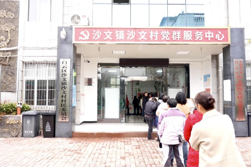 贵阳市白云区沙文镇沙文村党群服务中心门前适龄妇女正排队等待接受“两癌”筛查