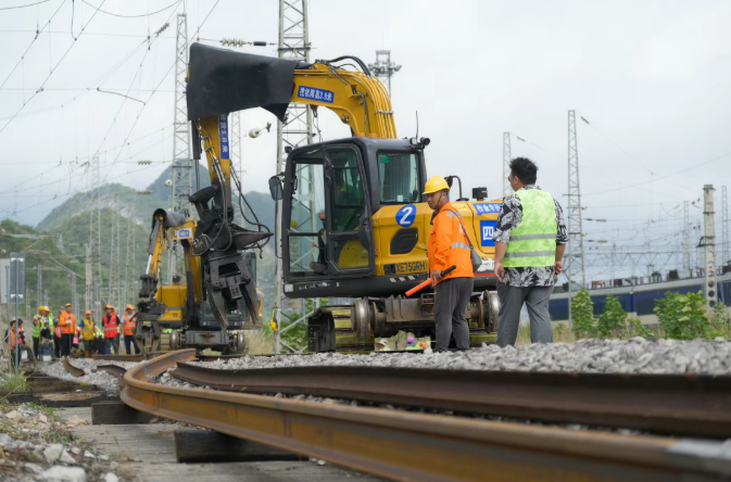 为保障施工安全与质量,贵阳工务段构建了全流程管控体系。一方面,提前联合电务、供电等配合单位开展现场踏勘,明确接触网、信号电缆等设备位置并标注防护,严格执行挖掘机“一机一人”防护、加装限高架等安全措施,严防触电、设备损伤等风险;另一方面,建立“三清点、一确认”制度,每日施工前核查人员机具、施工中把控技术标准、开通前验收线路状态,确保线路几何尺寸、道床密实度等关键指标符合《普速铁路线路修理规则》要求,开通后列车按阶梯速度逐步恢复常速,保障运输安全。