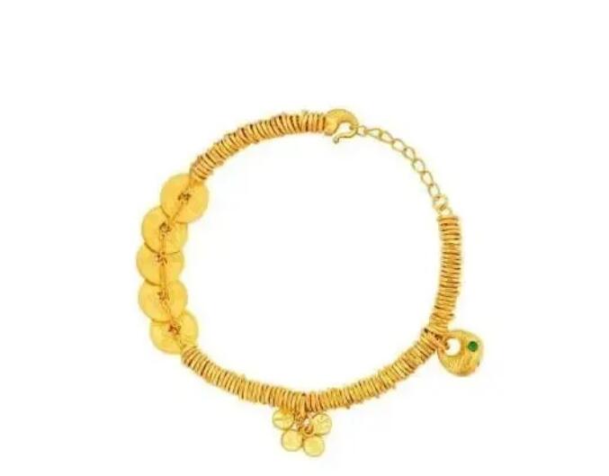 一条27克左右的五帝钱金手链,原价53800元,即将涨到71800元,相当于两三个月时间涨价18000元。