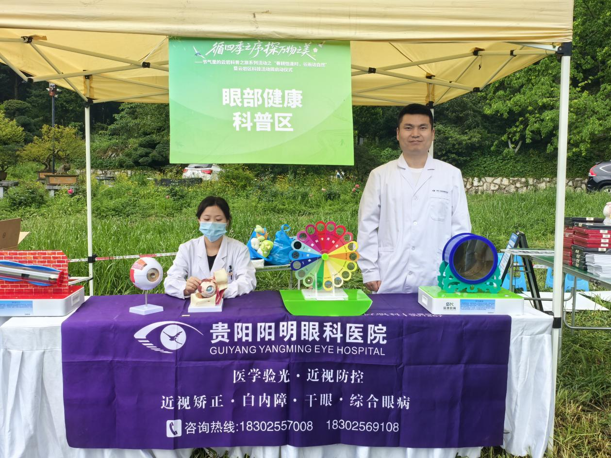 与常见的科技周活动不同,本次启动仪式的亮点之一,是将自然科普、传统文化体验与青少年健康知识教育相结合。活动现场设置了主舞台展演、分区域体验、自然观察等多个互动板块。其中,由贵阳华厦阳明眼科医院参与设立的“眼部健康科普区”,因其互动性和操作性,成为现场学生停留时间较长的区域之一。