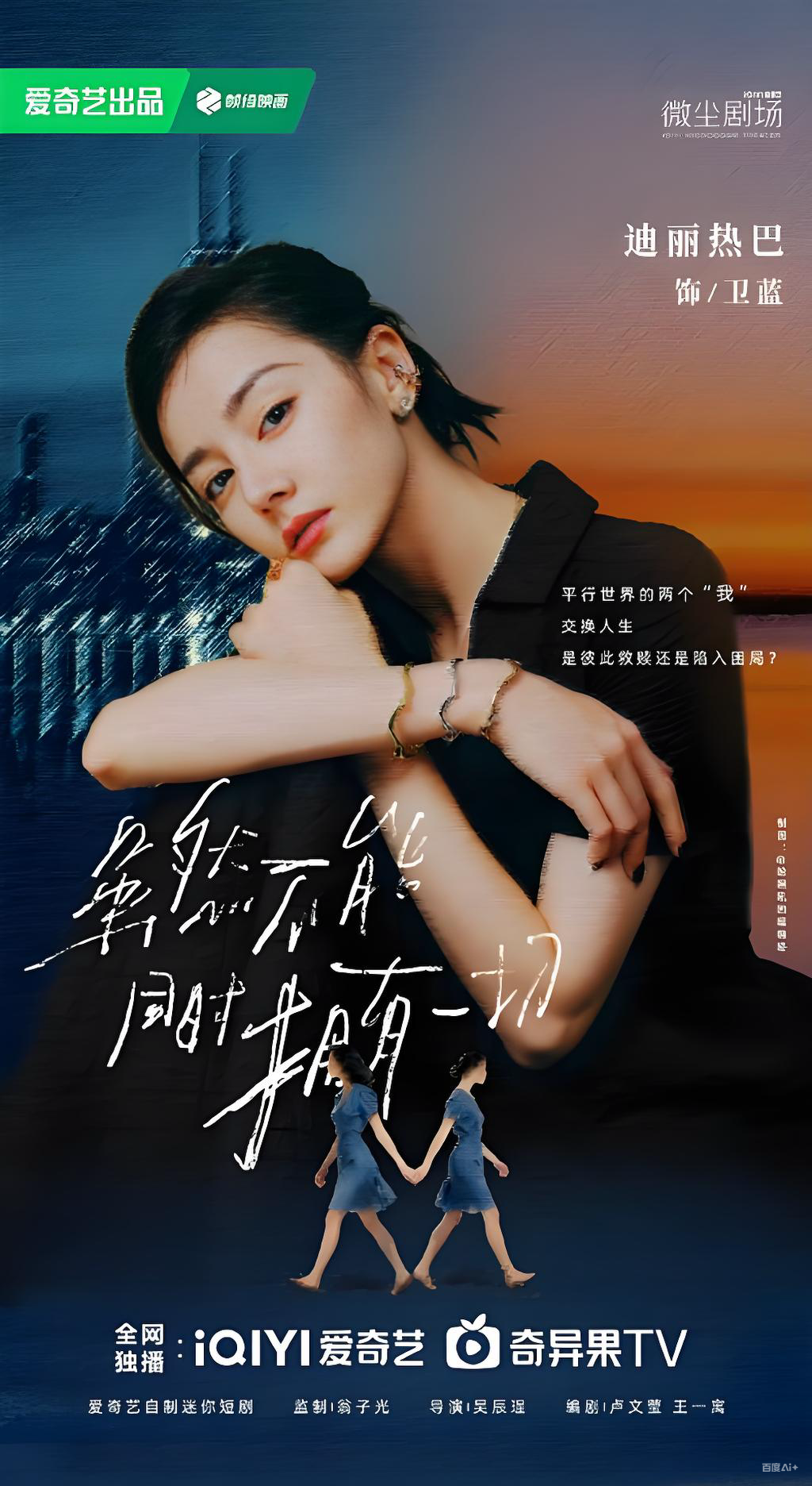预计12月底登陆爱奇艺的迷你剧《虽然不能同时拥有一切》,迪丽热巴首次一人分饰两角,演绎平行时空里的精英作家与小镇主妇。