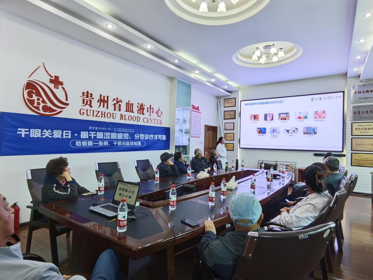 进入网络时代,由于人们使用电子产品的时间越来越长,加上用眼习惯不好,越来越多的人正遭受干眼的困扰。为倡导全民关注干眼问题,普及科学护眼知识,爱尔眼科通过将每年的10月10日定为全社会的“干眼关爱日”,从而唤醒公众对干眼这一眼科慢性疾病的重视。今年“干眼关爱日”的主题是“睑板腺一张照,干眼问题早知道”。关爱日当天,贵阳爱尔眼科医院党支部联合贵州省血液中心第一党支部及东笙巷社区党支部共同为贵州省血液中心的职工们开展干眼关爱日活动。