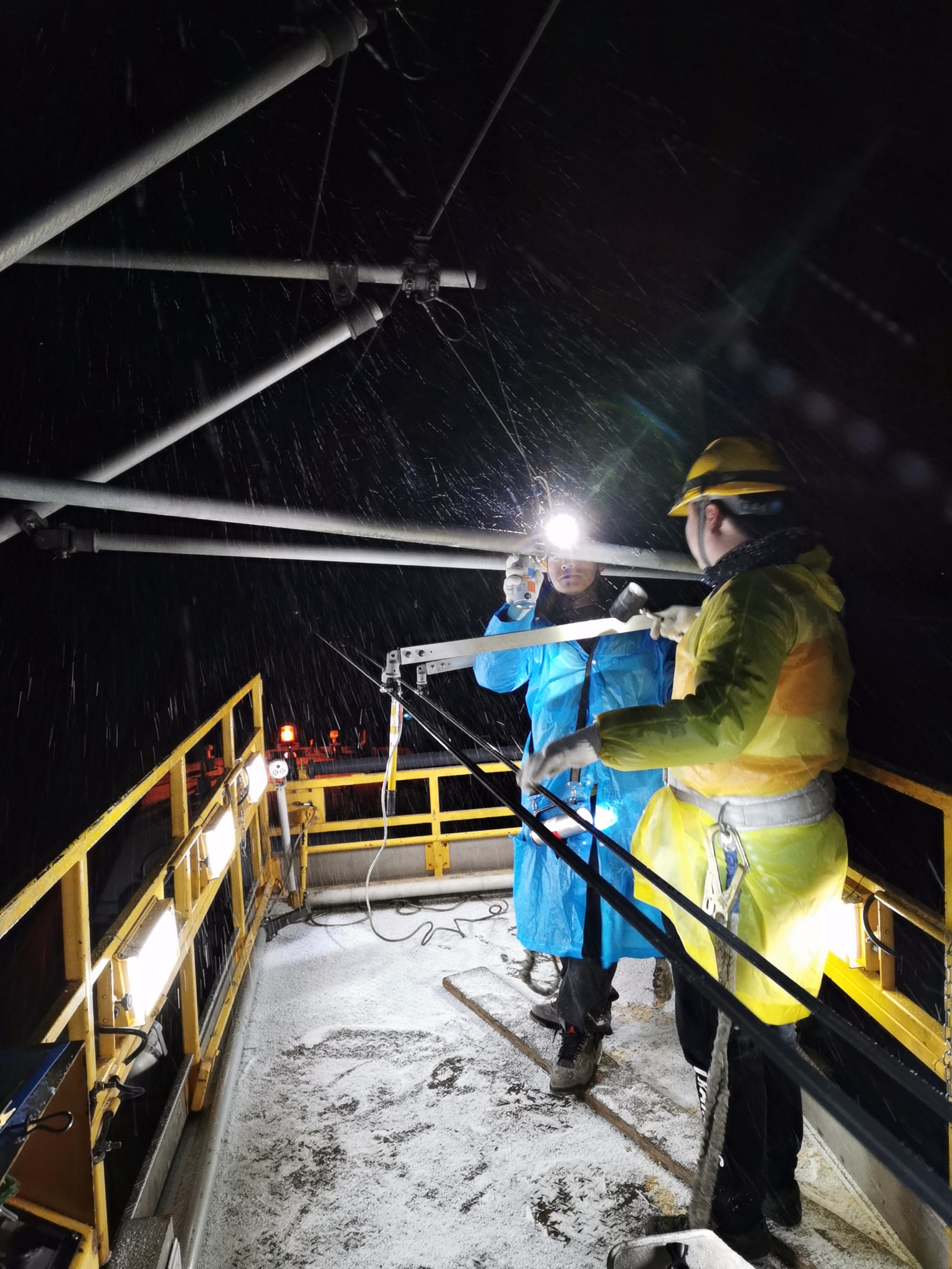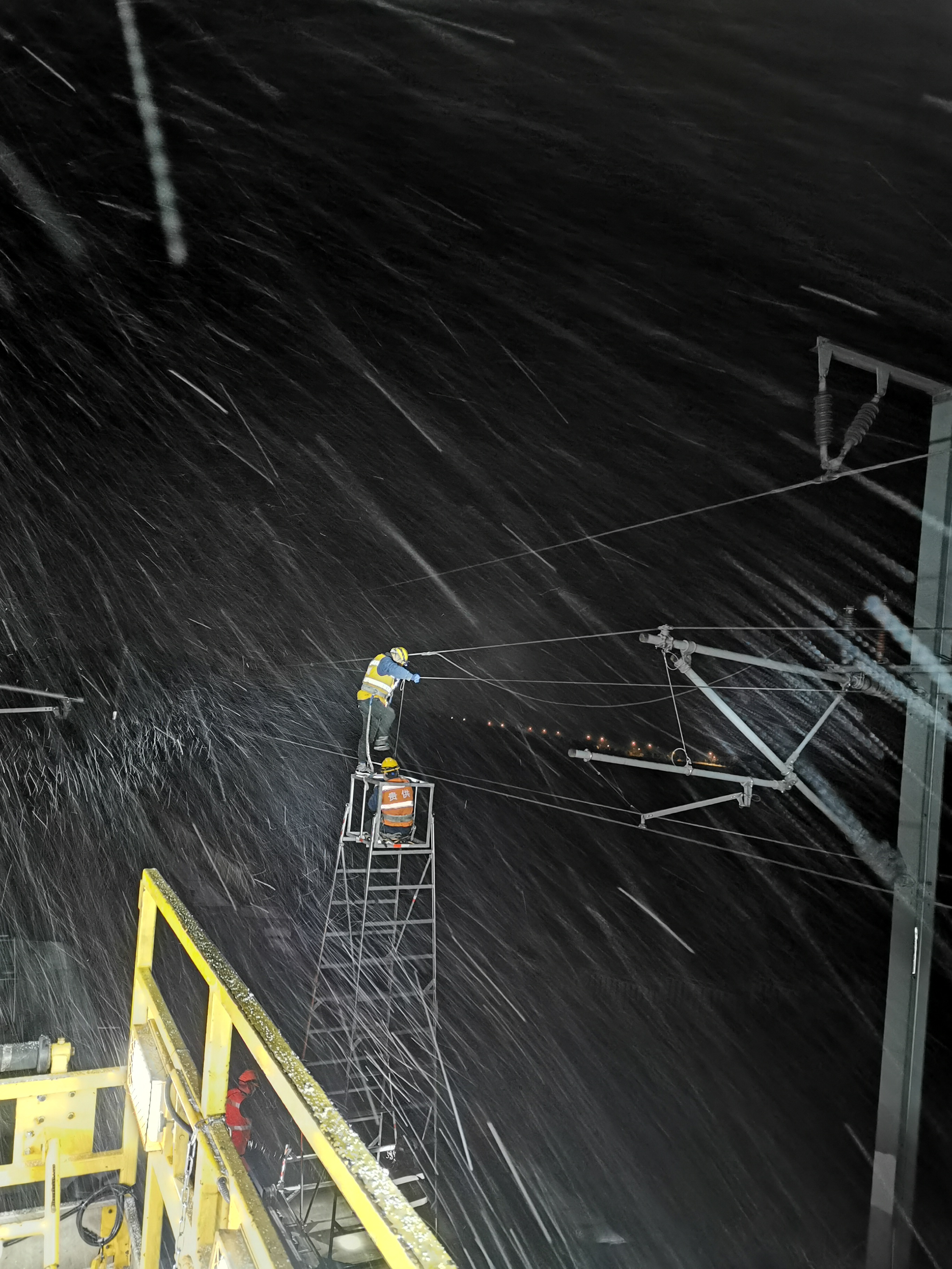 1月21日晚,贵州地区突降暴雪,贵阳供电段职工以雪为令,迅速出动,按照早已制定好的应急预案,开展暴雪天气运输保障和应急处置工作,立即组织100余名职工全副武装、带好“设备”到现场进行扫冰除雪,并检查线岔、分相器、分段器、隔离开关等关键处所的设备覆冰覆雪情况,使用红外线成像仪、测温仪对电气设备、变压器进行检查,防止偏载、过负荷烧损设备增派人员开展负荷测试和电气检查,有效消除隐患,积极打响新年第一场“风雪保卫战”,确保铁路供电安全。