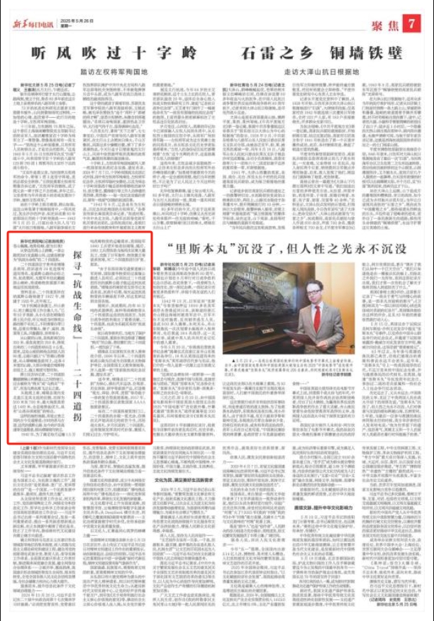 今天(5月26日),《新华每日电讯》刊发新闻《探寻“抗战生命线”——二十四道拐》。