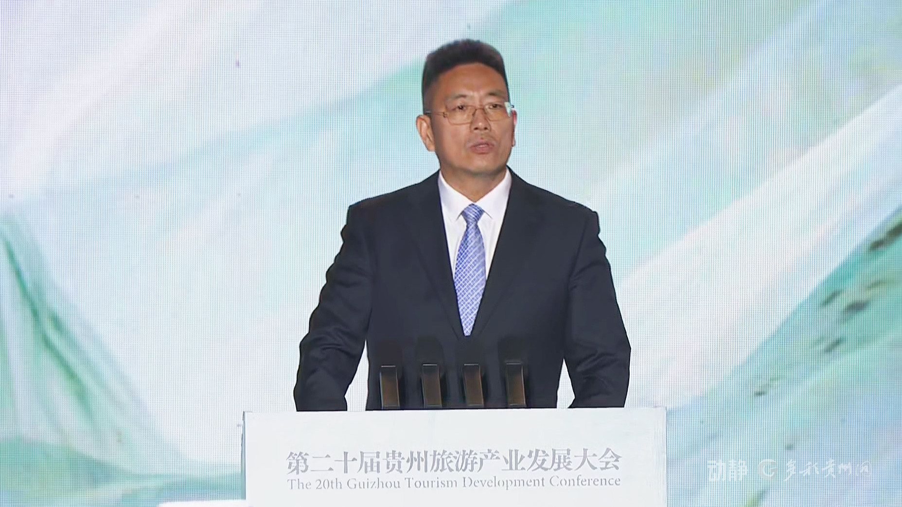 第二十届贵州旅游产业发展大会上,嘉宾高德董事长刘振飞发言。