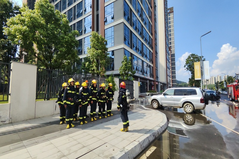 此次演练以 “高层建筑火灾联合作战” 为模拟场景,设定国际城高层建筑因电线短路引发火灾,火势迅速蔓延,并有人员被困,情况紧急。演练前,双方指挥员召开协同作战部署会,结合现场环境特点,明确了力量编成、作战区域划分、通信联络方式及安全防护要求,制定了内攻灭火、外围警戒、人员疏散等详细作战方案,确保演练有序开展。