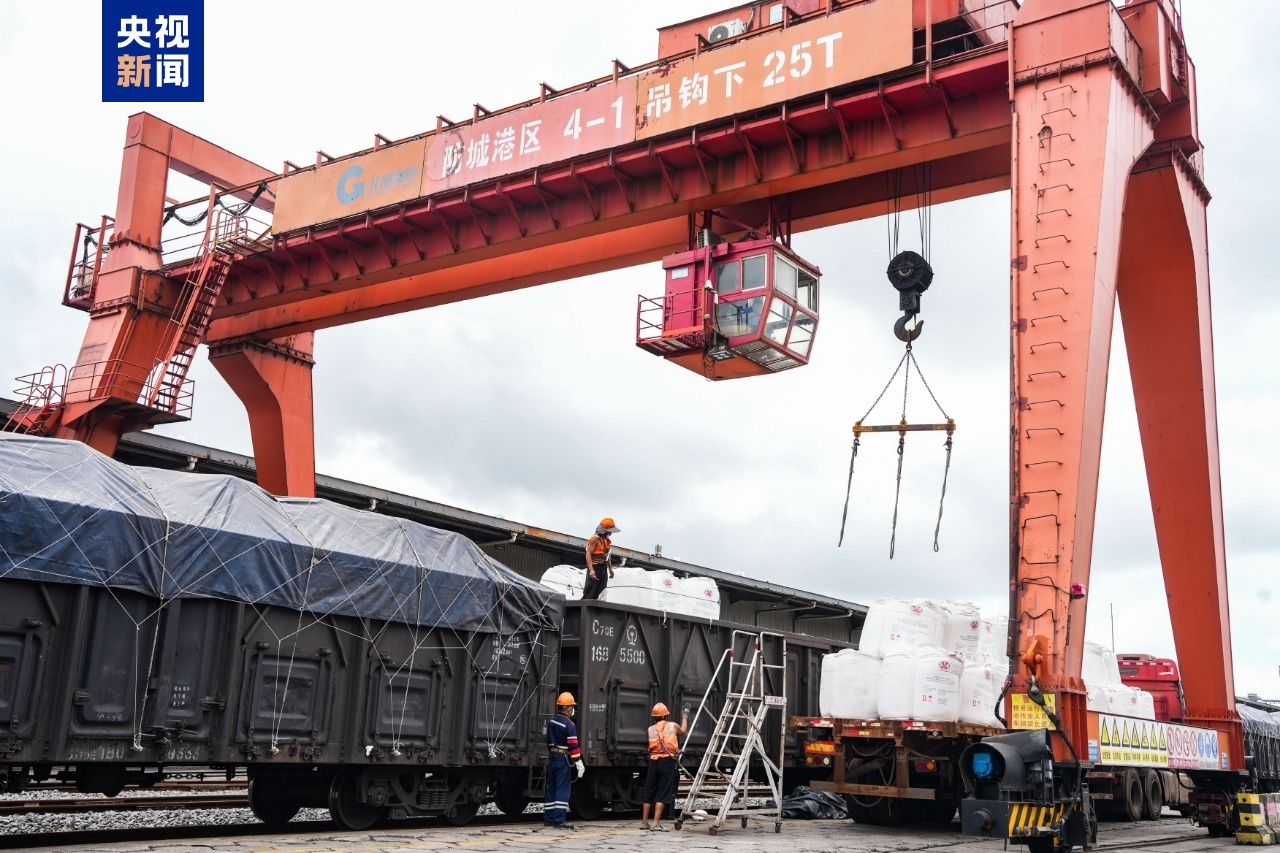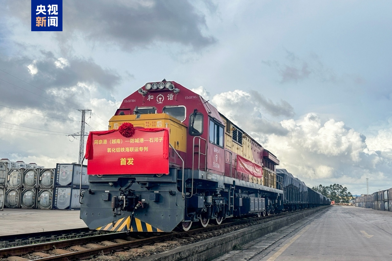 10月15日下午,满载3000吨越南氧化铝的铁海联运专列从广西防城港站开出,沿着西部陆海新通道北上驶向新疆石河子。这是广西开出的首趟自越南同奈港至新疆的氧化铝铁海联运专列,开辟了东南亚经北部湾港至新疆能源产业基地间的物流快车道,为推动国内国际双循环、降低企业物流成本提供有力的运输保障。